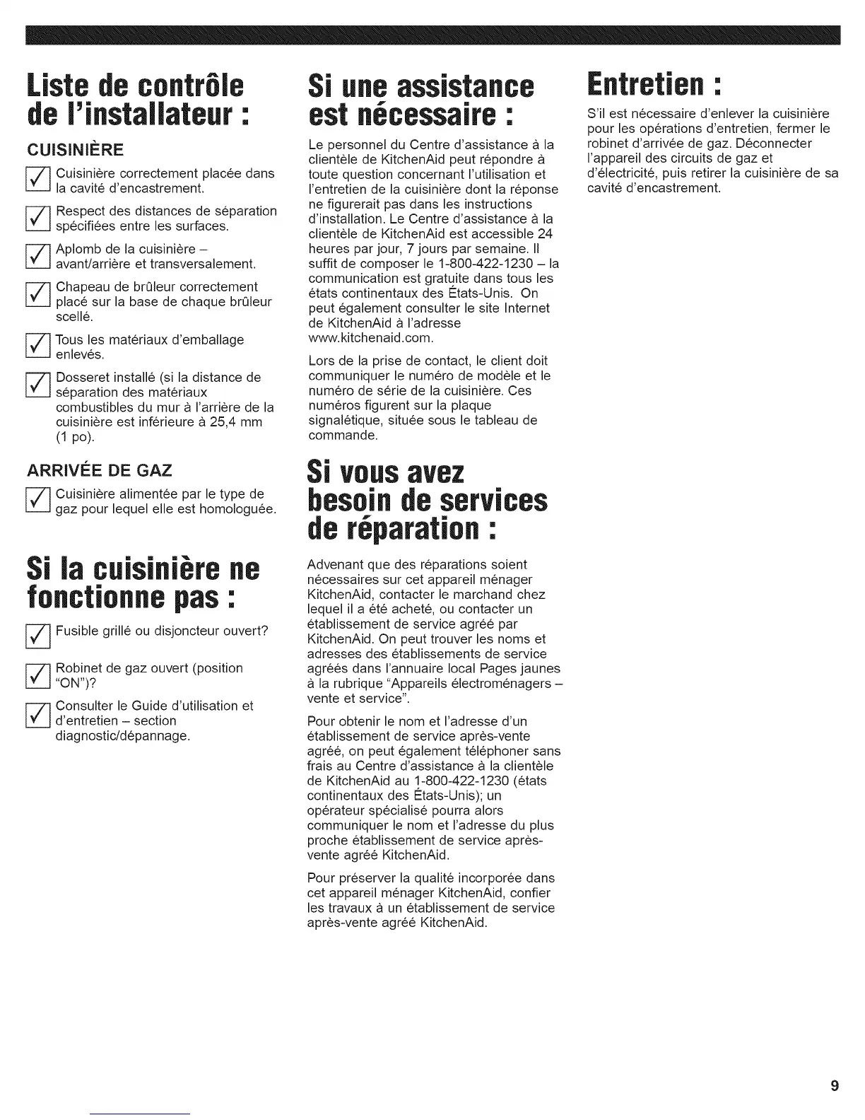 de KitchenAid au 1-800-422-1230 (etats
