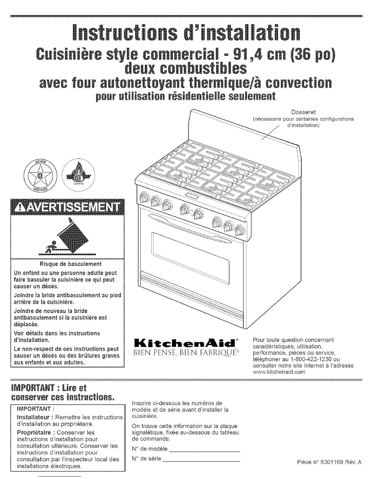 modele et de serie avant d'installer la