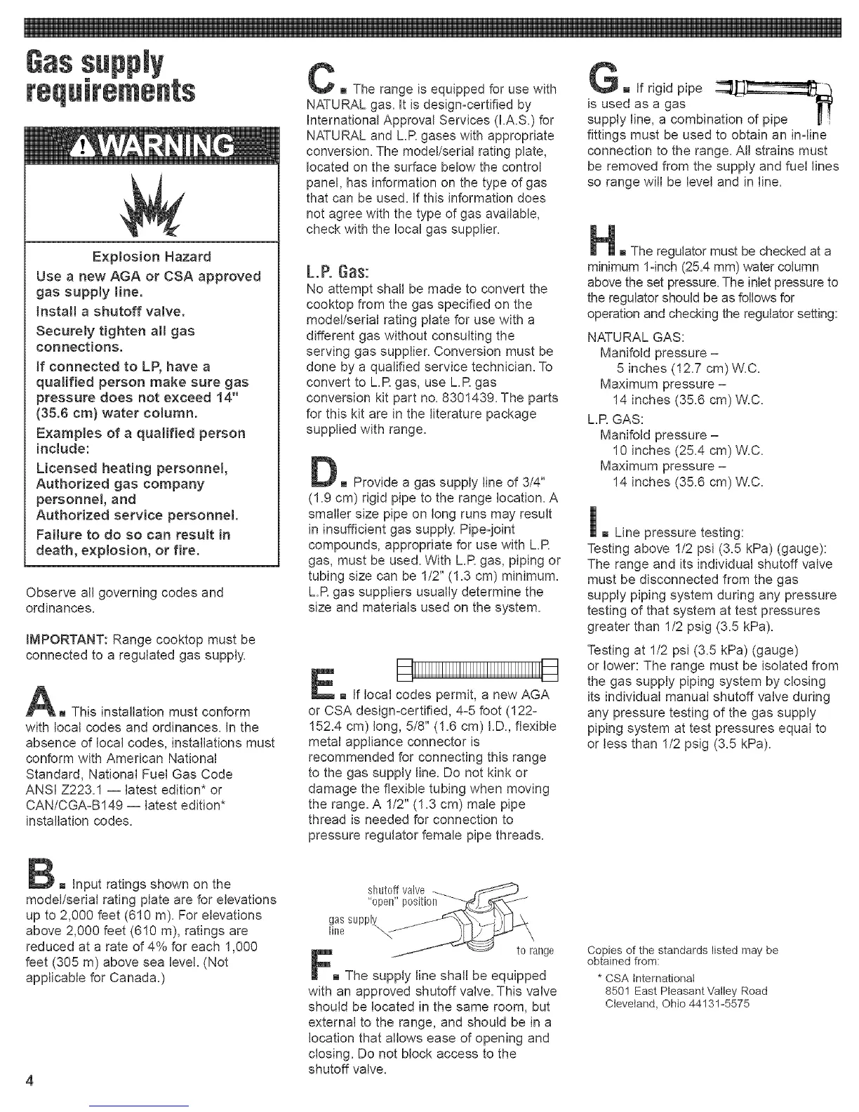 cooktop from the gas specified on the