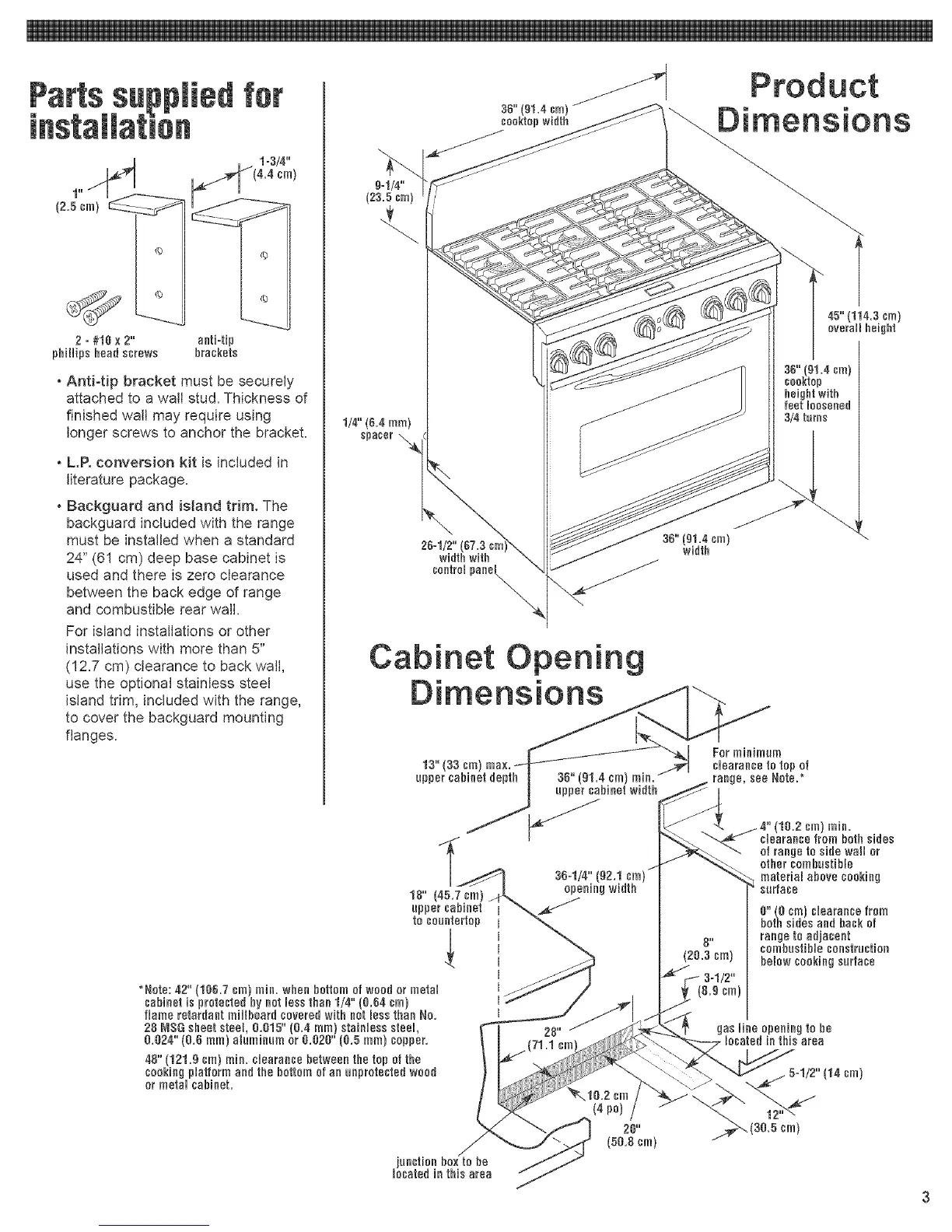 *Note: 42" (106.7 sin) rain. when bottom of weed or metal