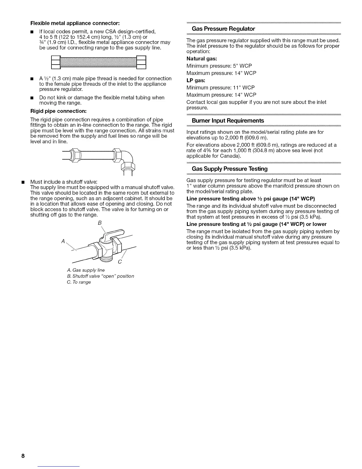 The gas pressure regulator supplied with this range must be used.