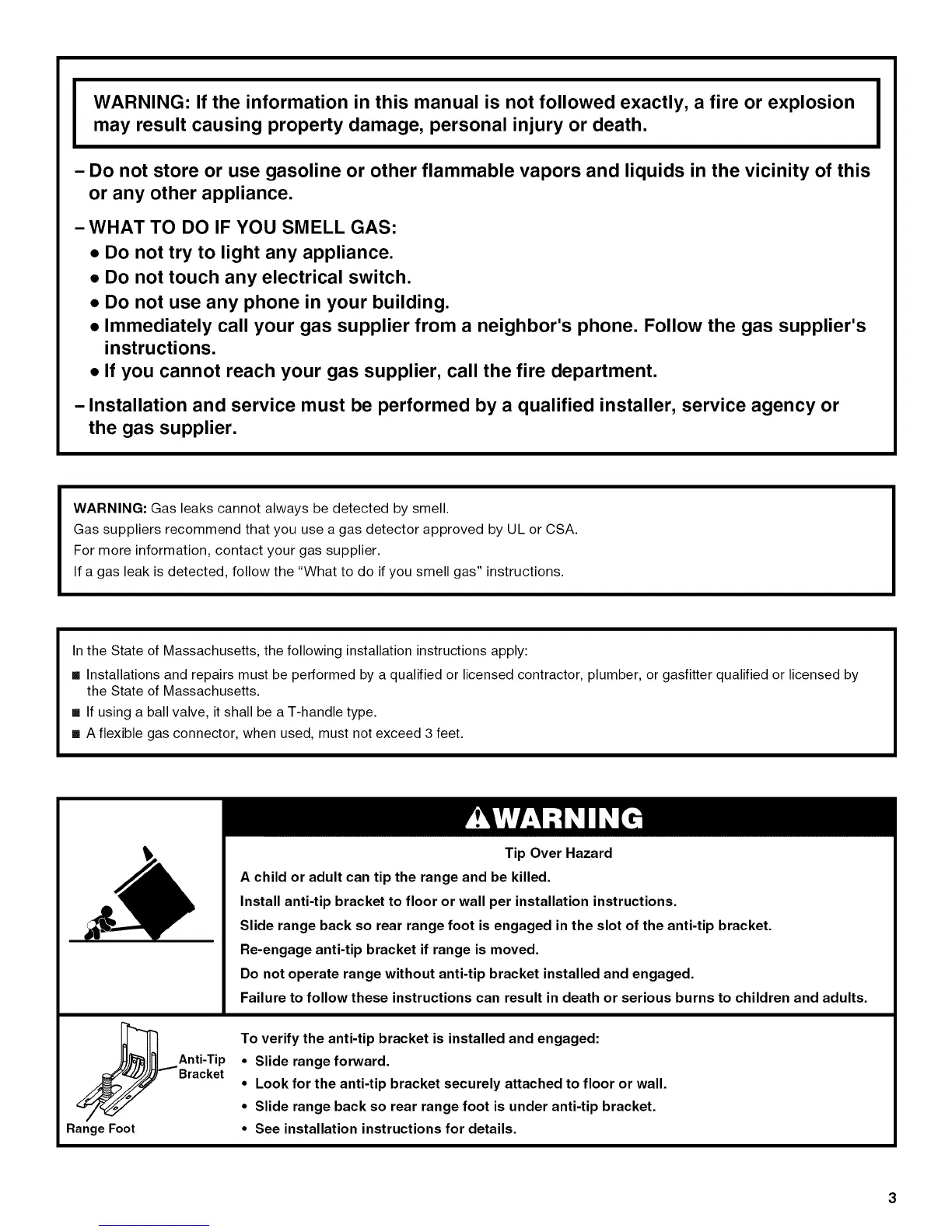 • Look for the anti-tip bracket securely attached to floor or wall.
