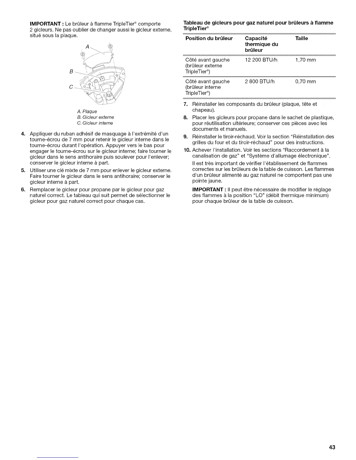 IMPORTANT : Le brQleur & flamme TripleTier _ comporte