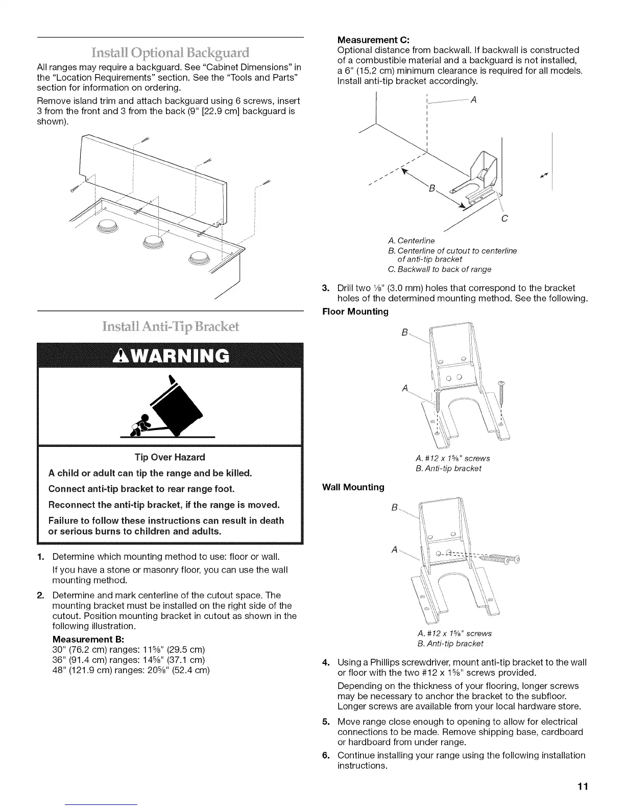 All ranges may require a backguard. See "Cabinet Dimensions" in