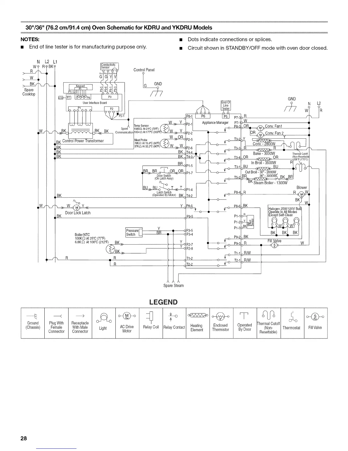 • End of line tester is for manufacturing purpose only. • Circuit shown in STANDBY/OFF mode with oven door closed.