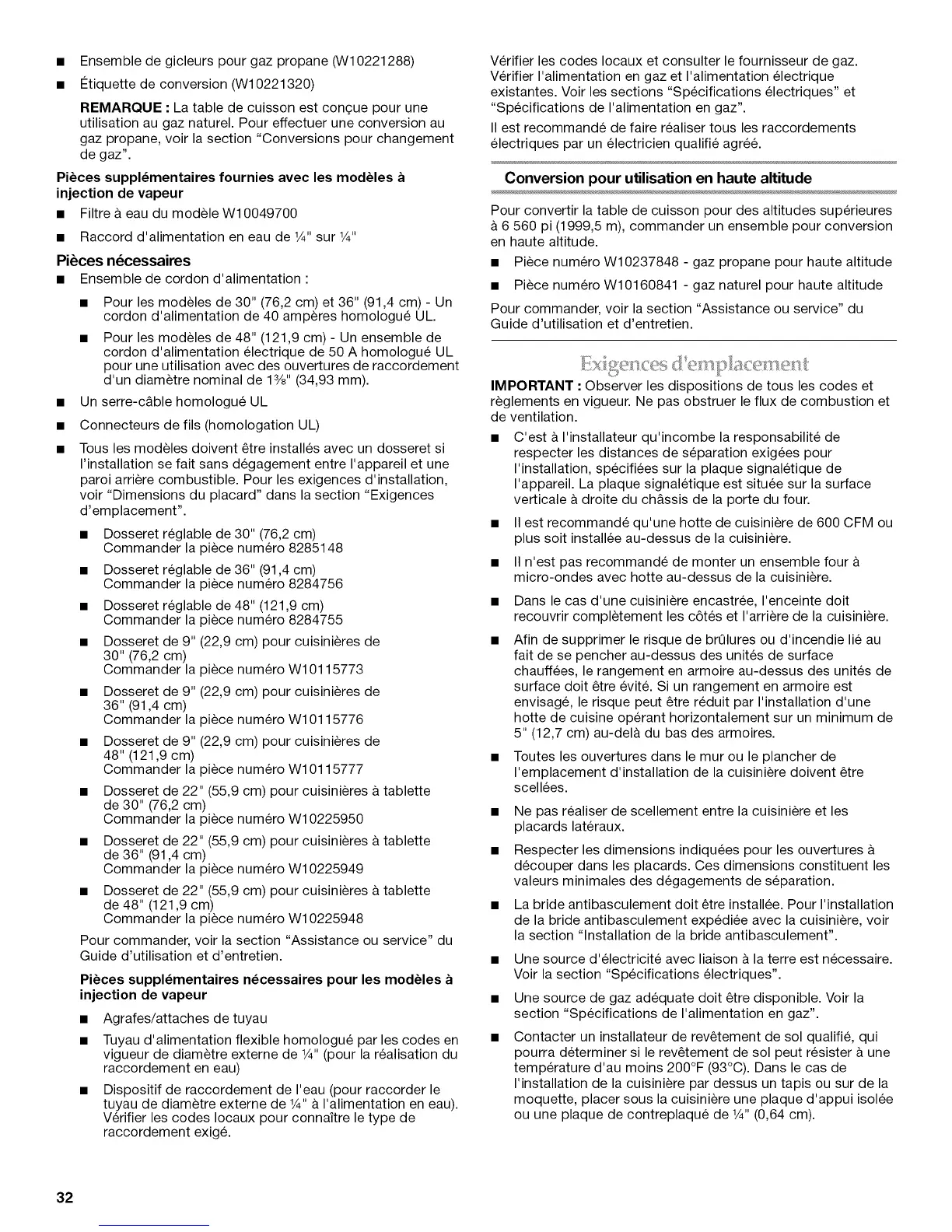 • Piece numero W10237848 - gaz propane pour haute altitude