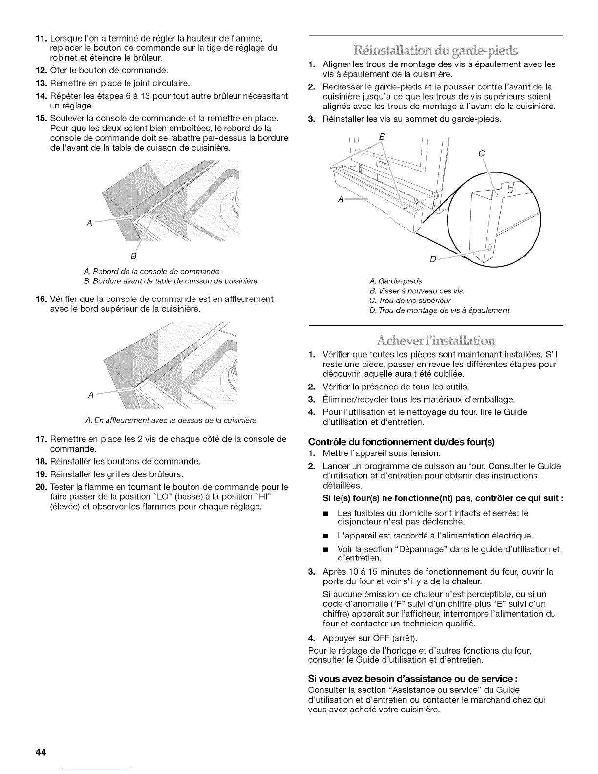 alignes avec les trous de montage & I'avant de la cuisiniere.