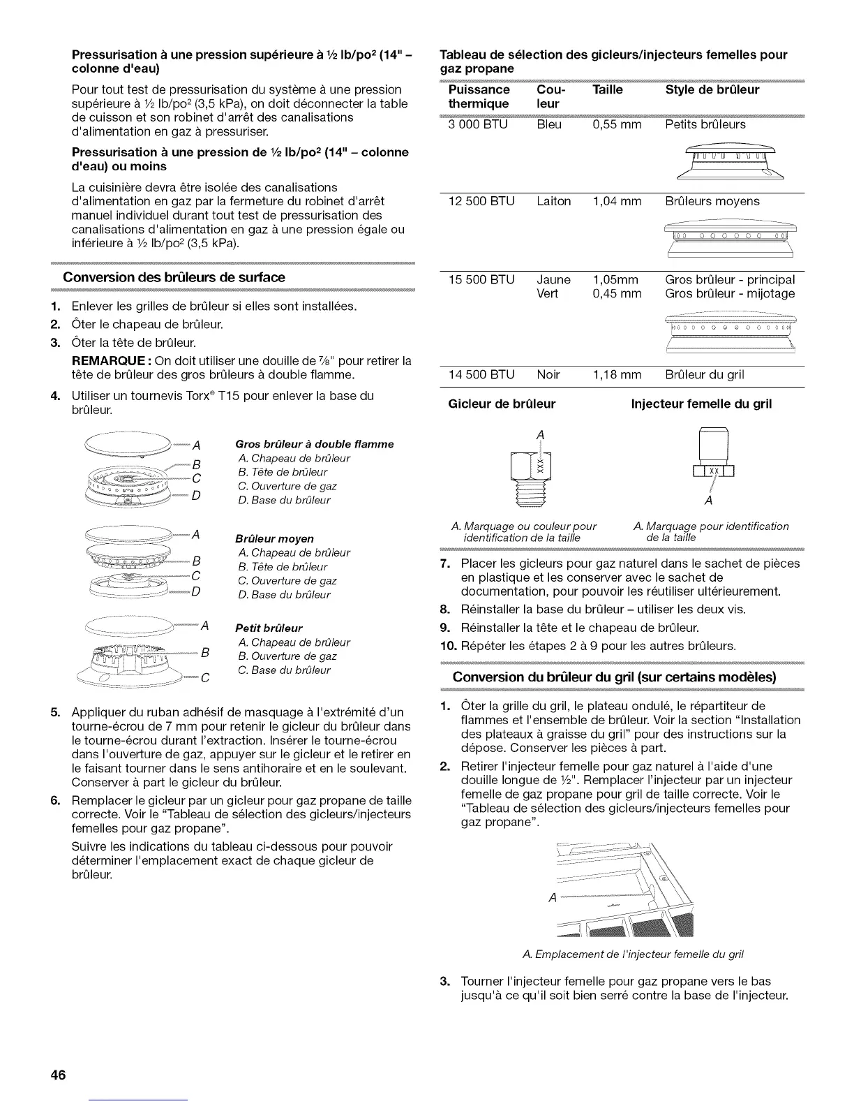 7. Placer les gicleurs pour gaz naturel dans le sachet de pieces