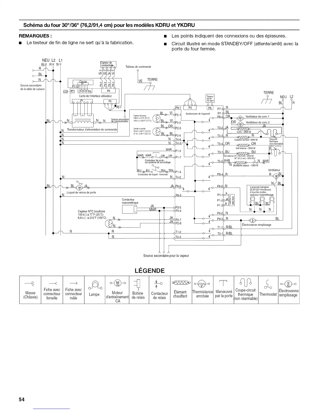 • Le testeur de fin de ligne ne sert qu'& la fabrication. • Circuit illustre en mode STANDBY/OFF (attente/arr_t) avec la