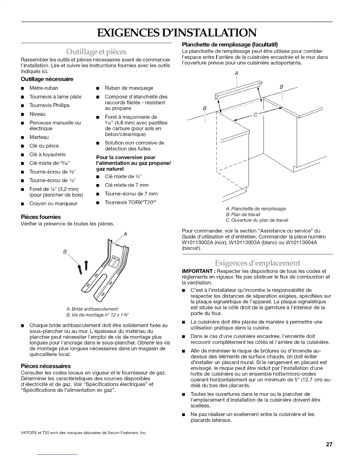 • Ne pas realiser un scellement entre la cuisiniere et les