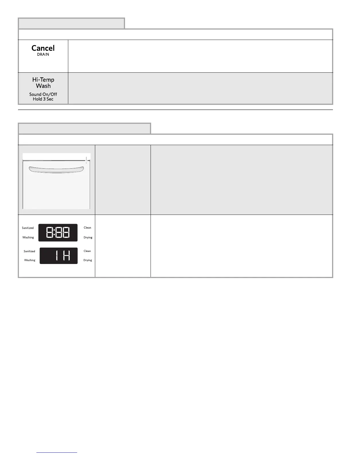 option selections. After you start the dishwasher, the display counts down the