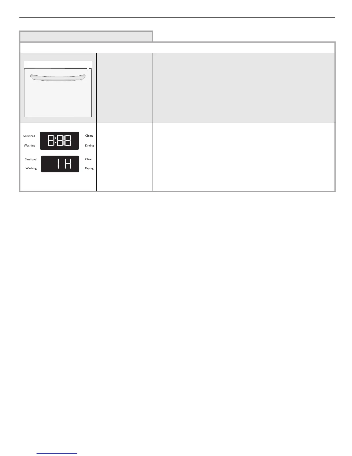Sección de información provista por la lavavajillas