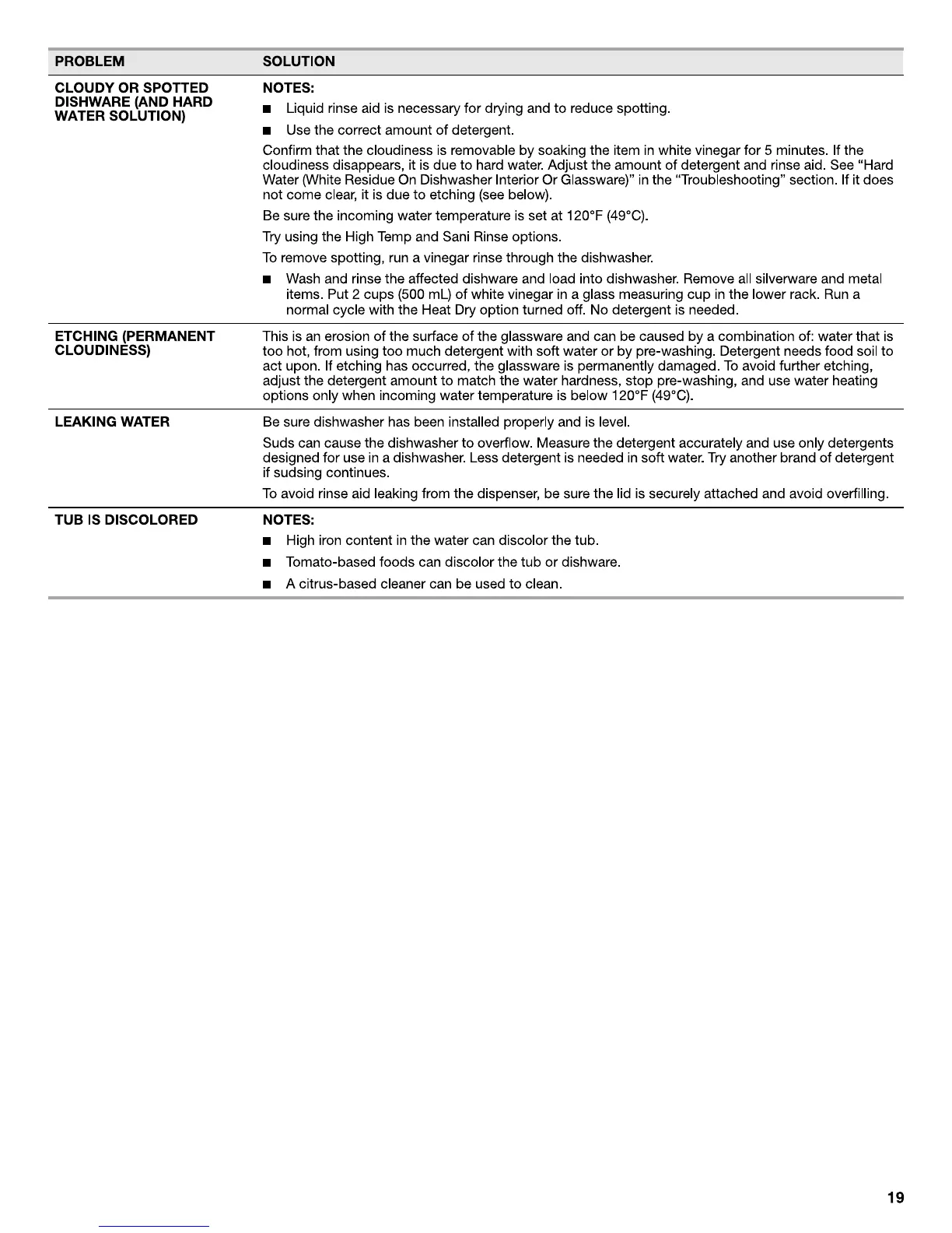 KitchenAid KDTE204DBL - Cloudy or Spotted Dishware (and Hard Water Solution); Etching (Permanent Cloudiness); Leaking Water