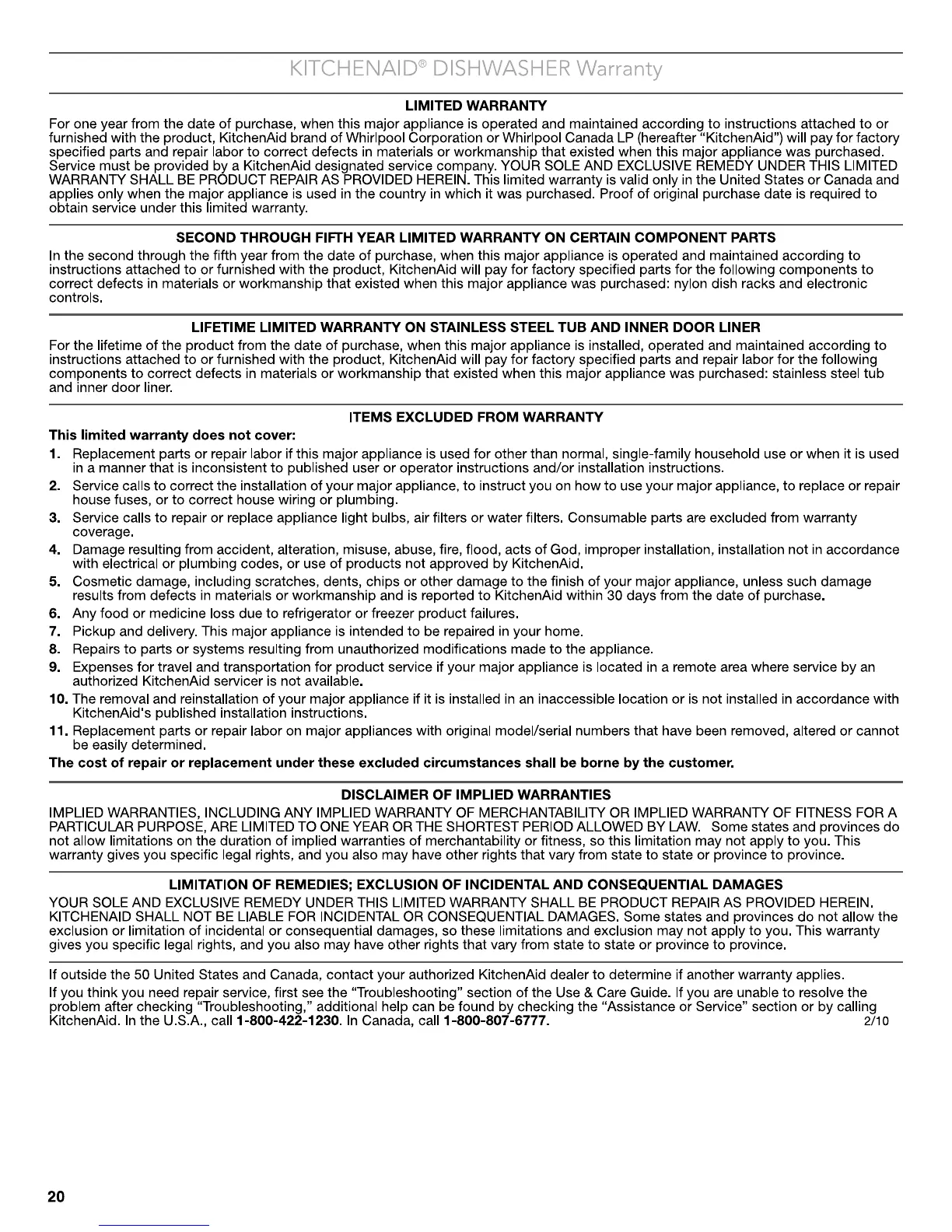 KitchenAid KDTE204DBL - LIMITED WARRANTY