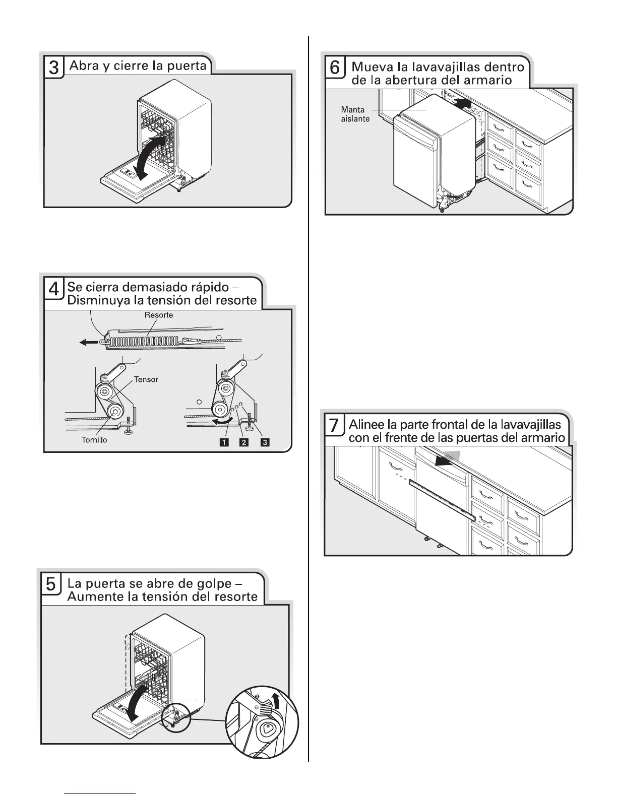 lavavajillas por completo en la abertura del armario. No retuerza ni