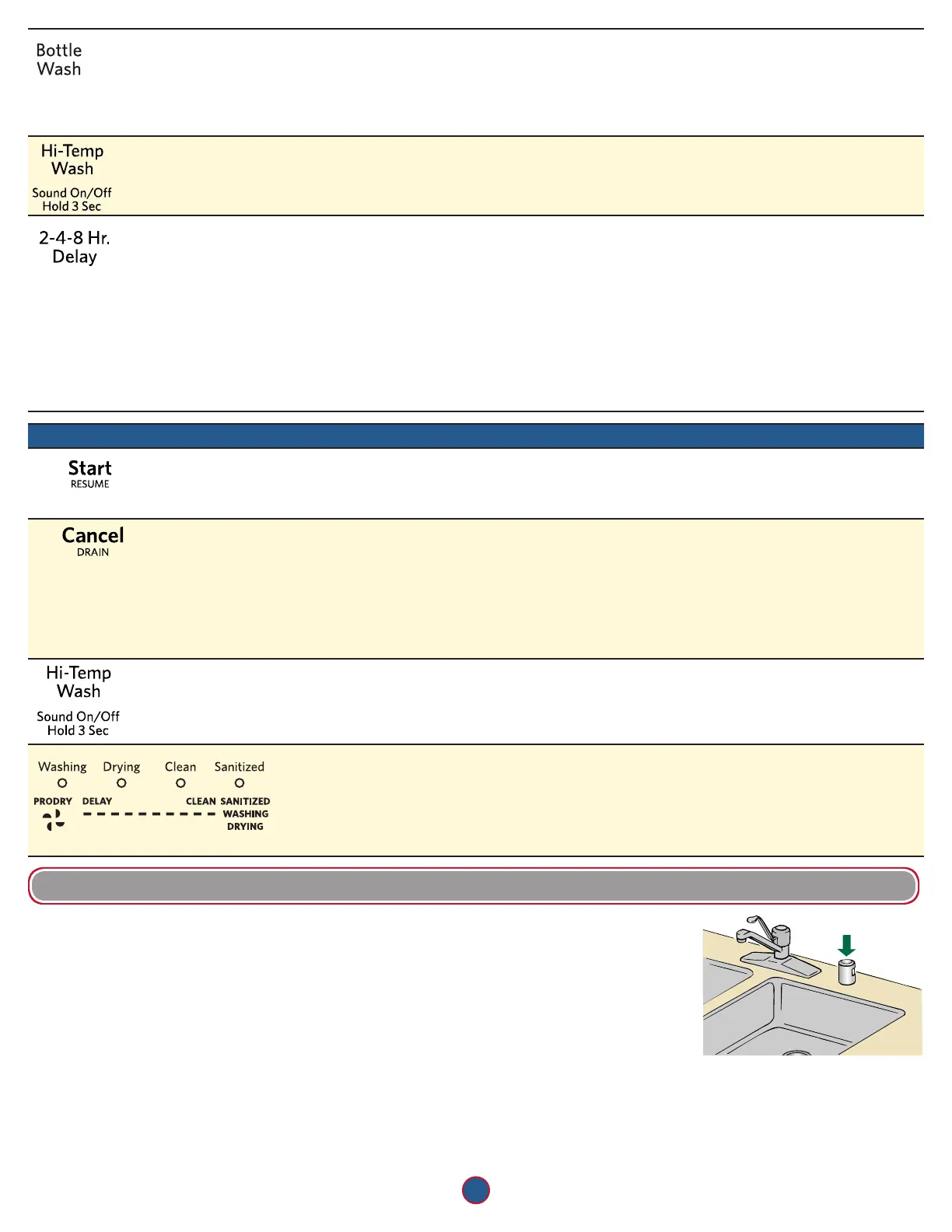Sanitized (assainissement) s’allume. Si le lave-vaisselle n’a pas bien assaini la vaisselle,