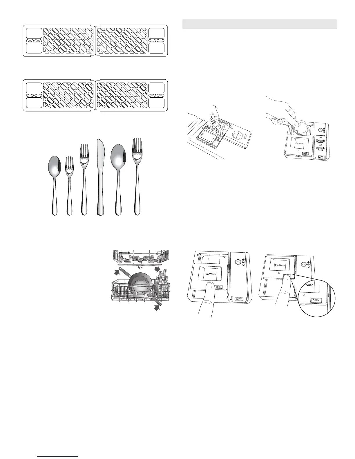 ■ Use automatic dishwasher detergent only. Add powder, liquid