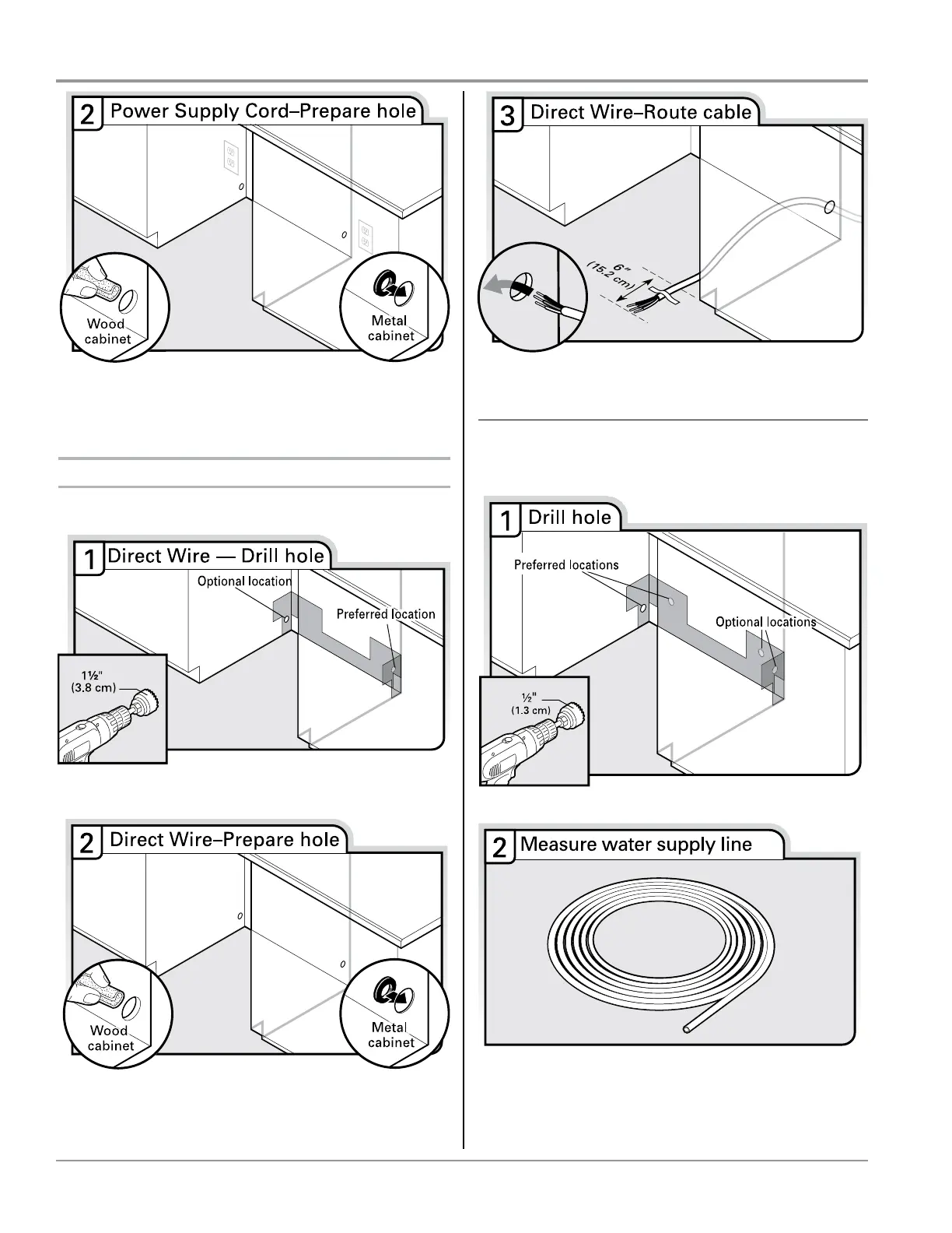 Drill a 1¹⁄₂" (3.8 cm) hole in right-hand cabinet side or rear.