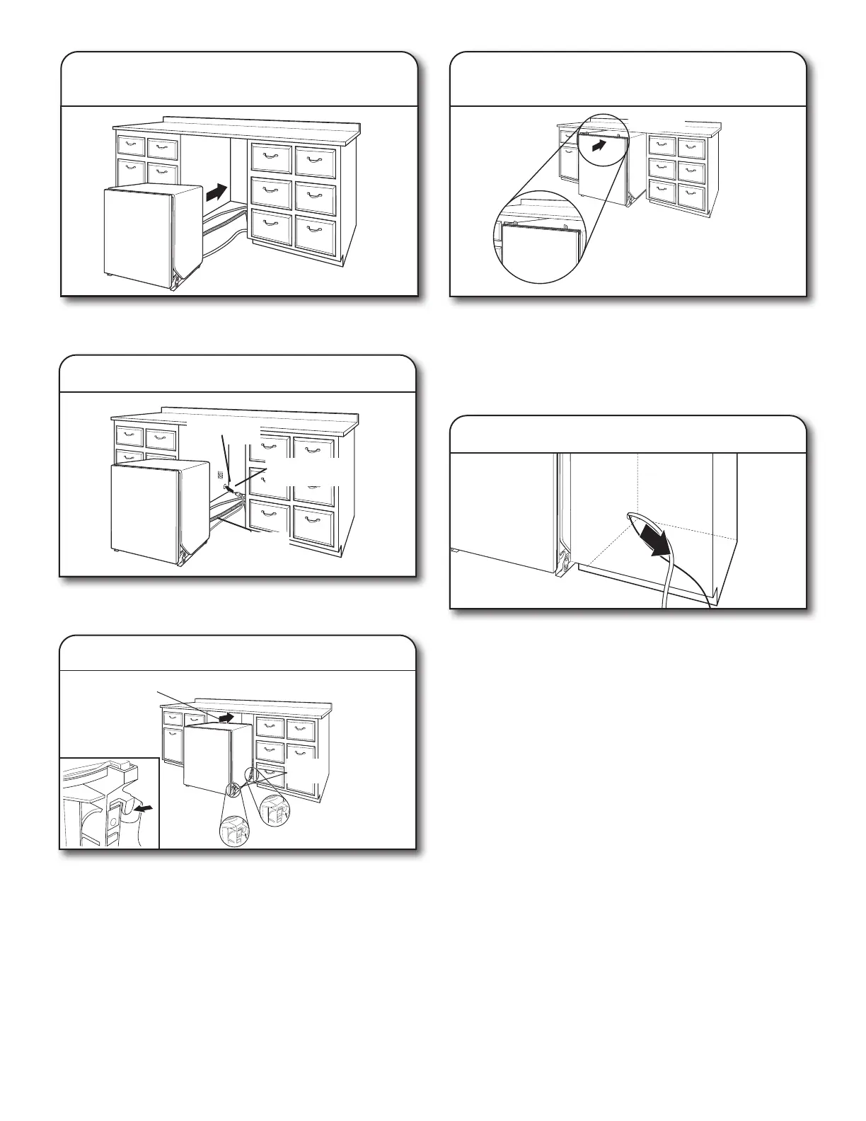 coins arrière gauche et droit avant de pousser le lave-vaisselle en