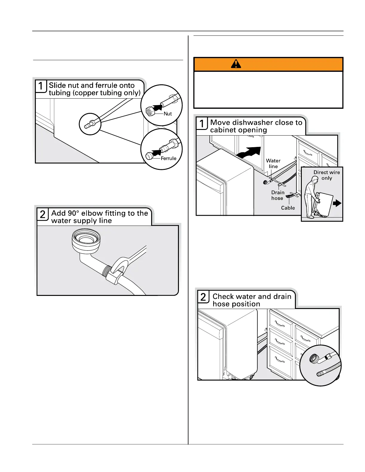 Use 2 or more people to move and install dishwasher.