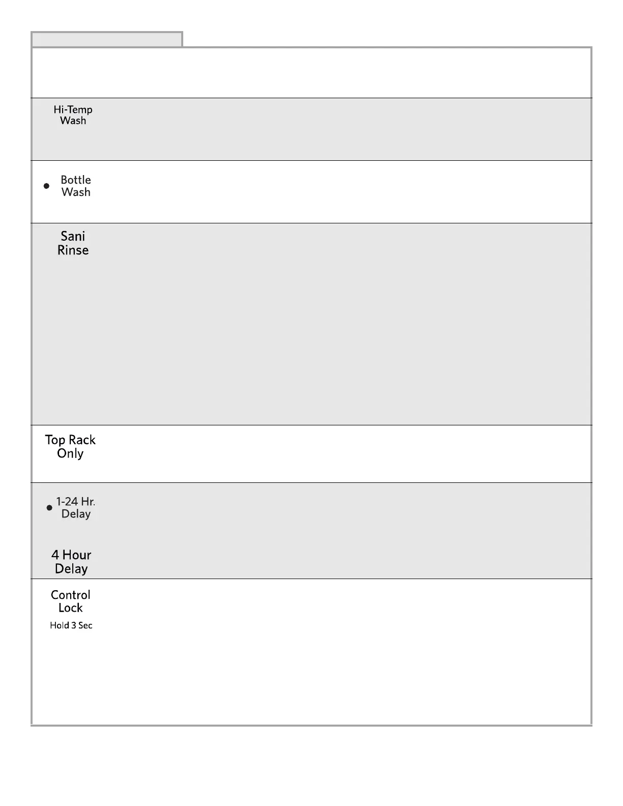 UPPER, 4 HOUR DELAY or BOTTLE WASH to lock the controls. The Control Lock light will turn on when the
