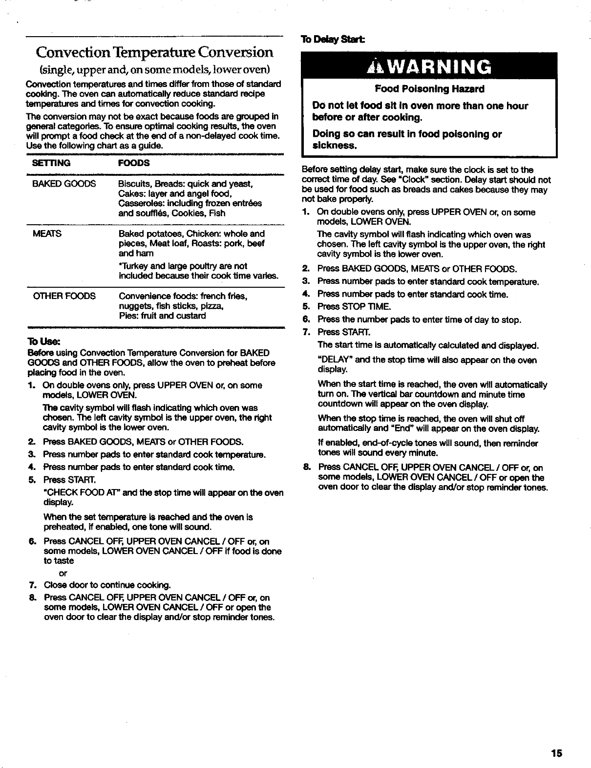 some models, LOWER OVEN CANCEL / OFF if food is dons