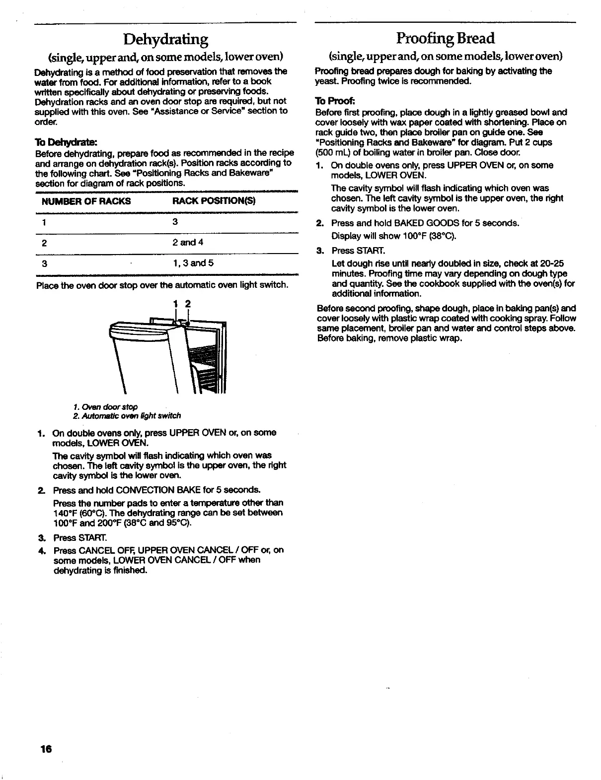 Place the oven door stop over the automatic oven light switch.