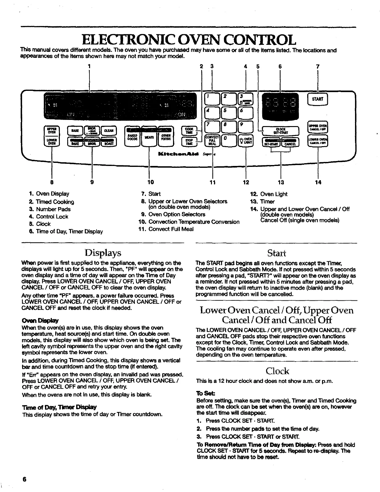 except for the Clock, Timer, Control Lock end Sabbath Mode.