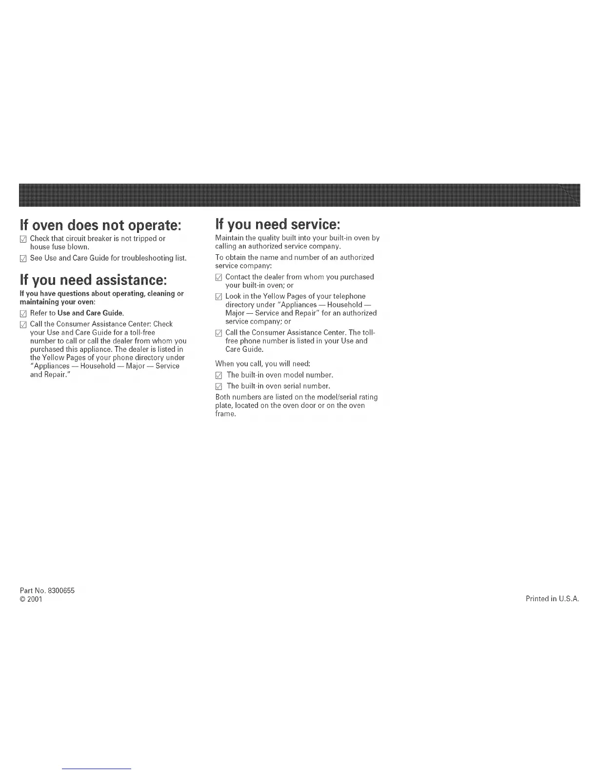 [_ See Use and Care Guide for troubleshooting list.