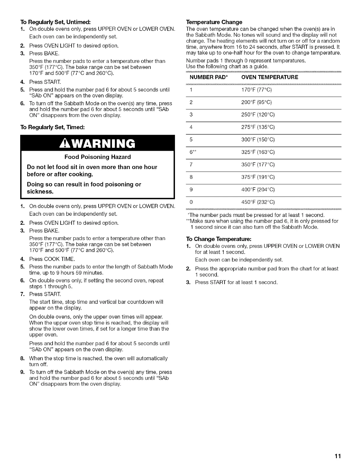 NUMBER PAD* OVEN TEMPERATURE