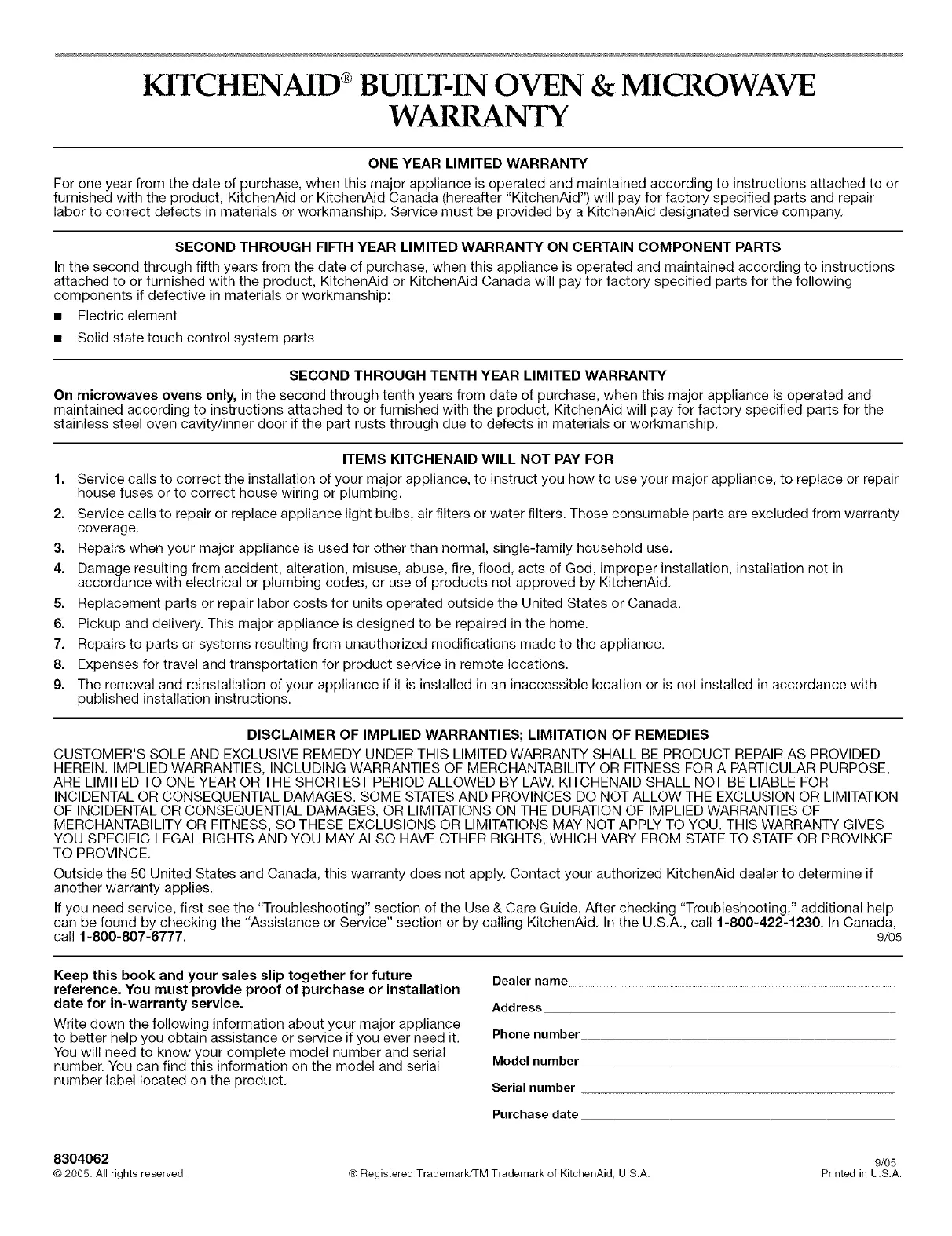 © 2005. All rights reserved. ® Registered Trademark/TM Trademark of KitchenAid, U.S.A. Printed in U.S.A.