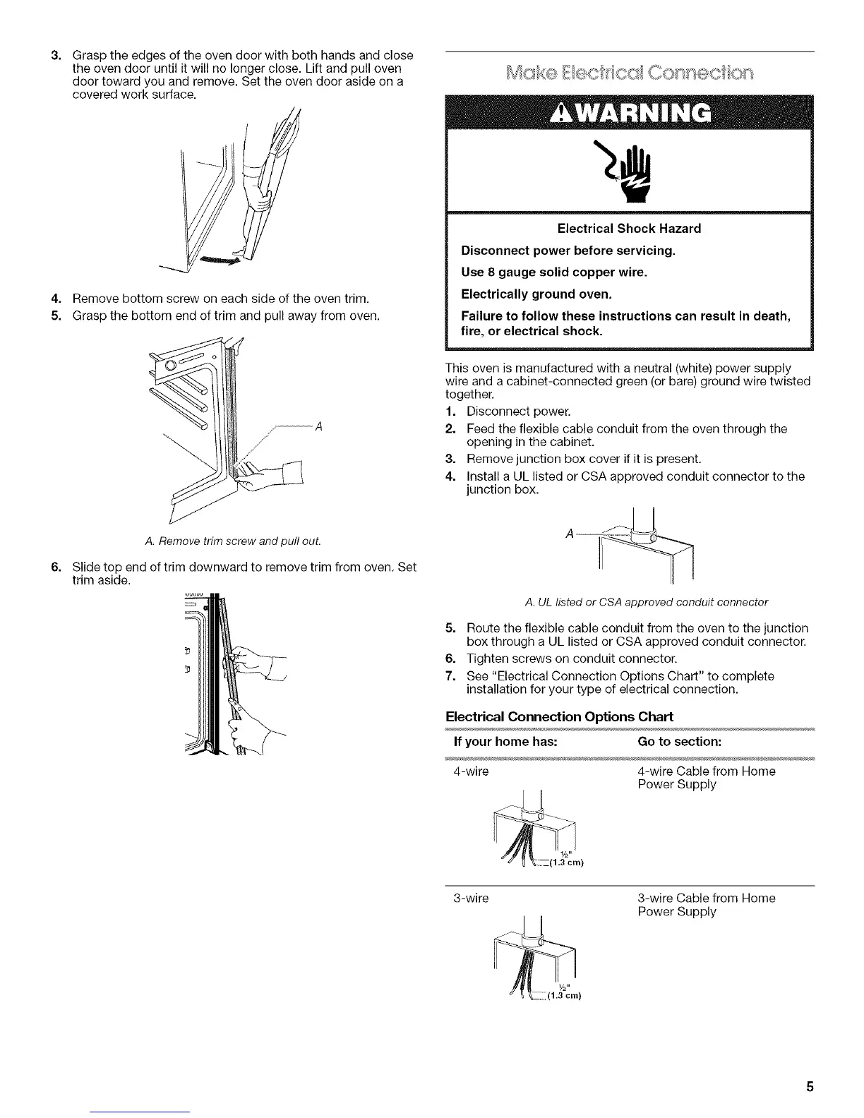7. See "Electrical Connection Options Chart" to complete