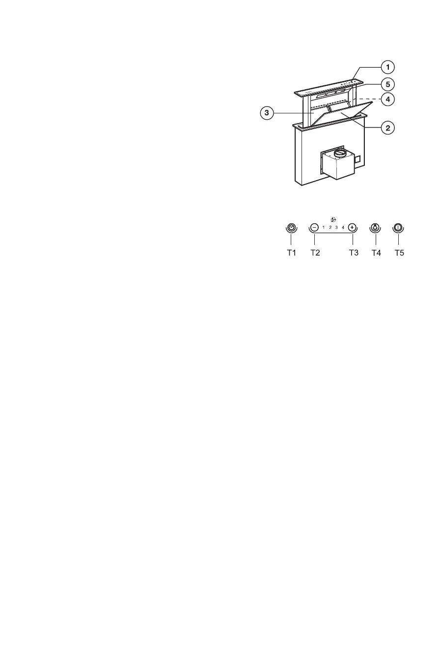 IMPORTANT: If the extraction panel is closed (hood off), button T4 firstly operates extraction panel