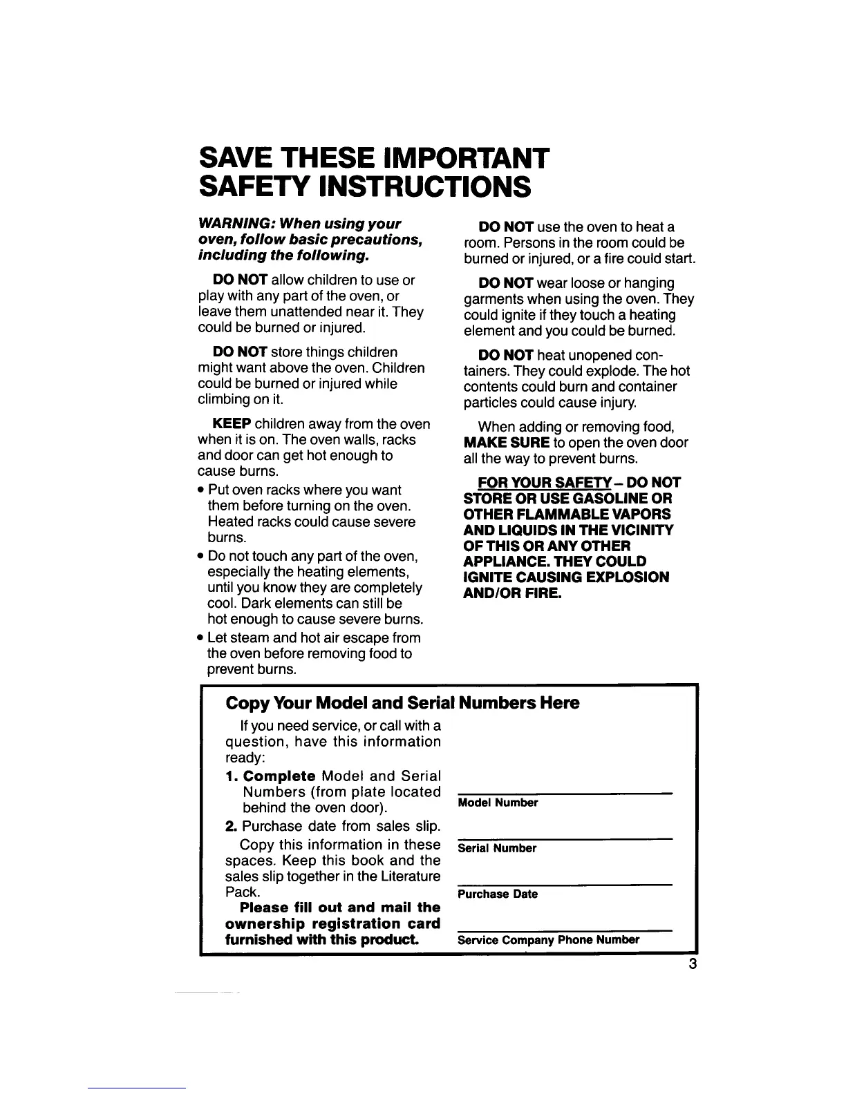 KitchenAid KEBI100 - Important Safety Instructions; Model and Serial Number Recording
