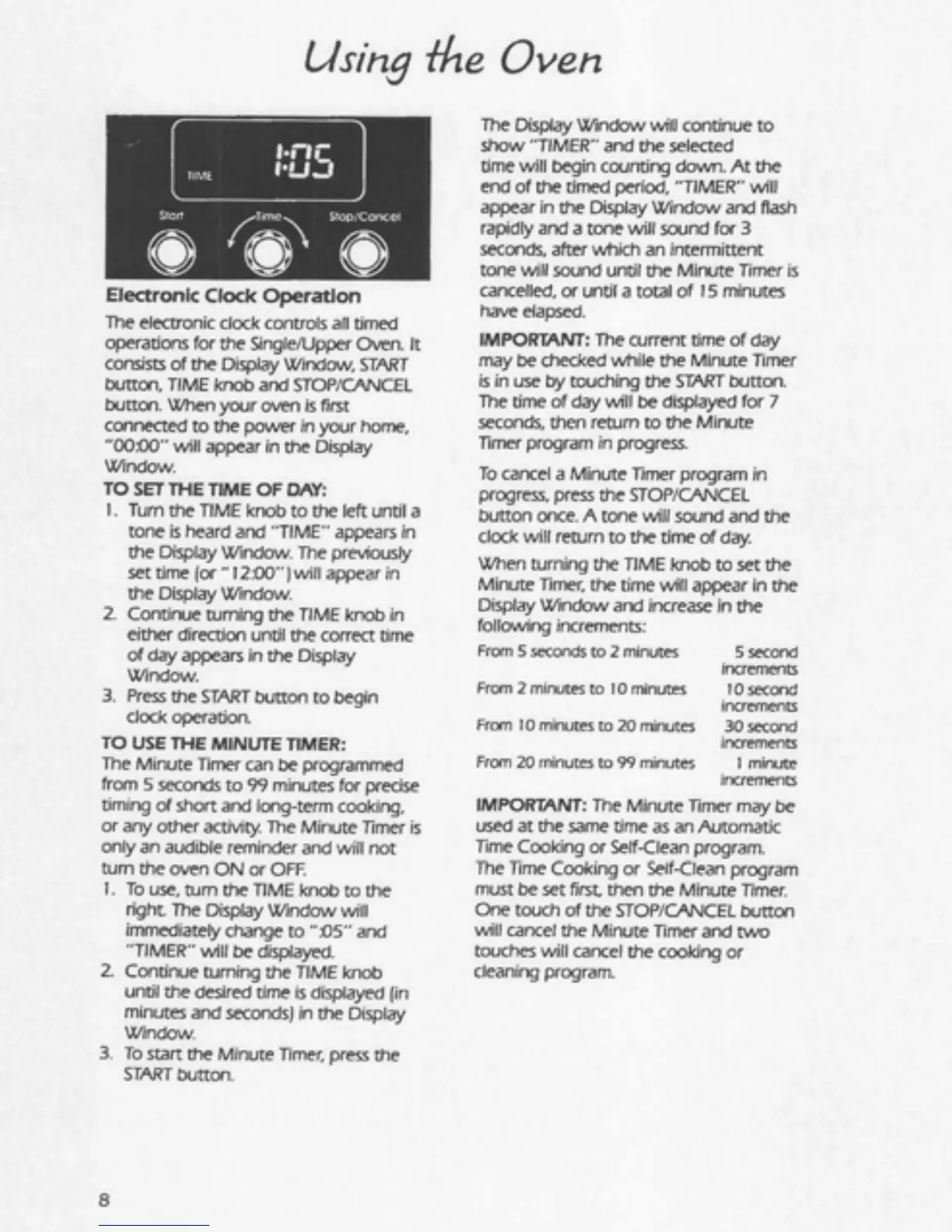 KitchenAid KEBI100W - Using the Oven; To Set the Time of Day; To Use the Minute Timer; Electronic Clock Operation