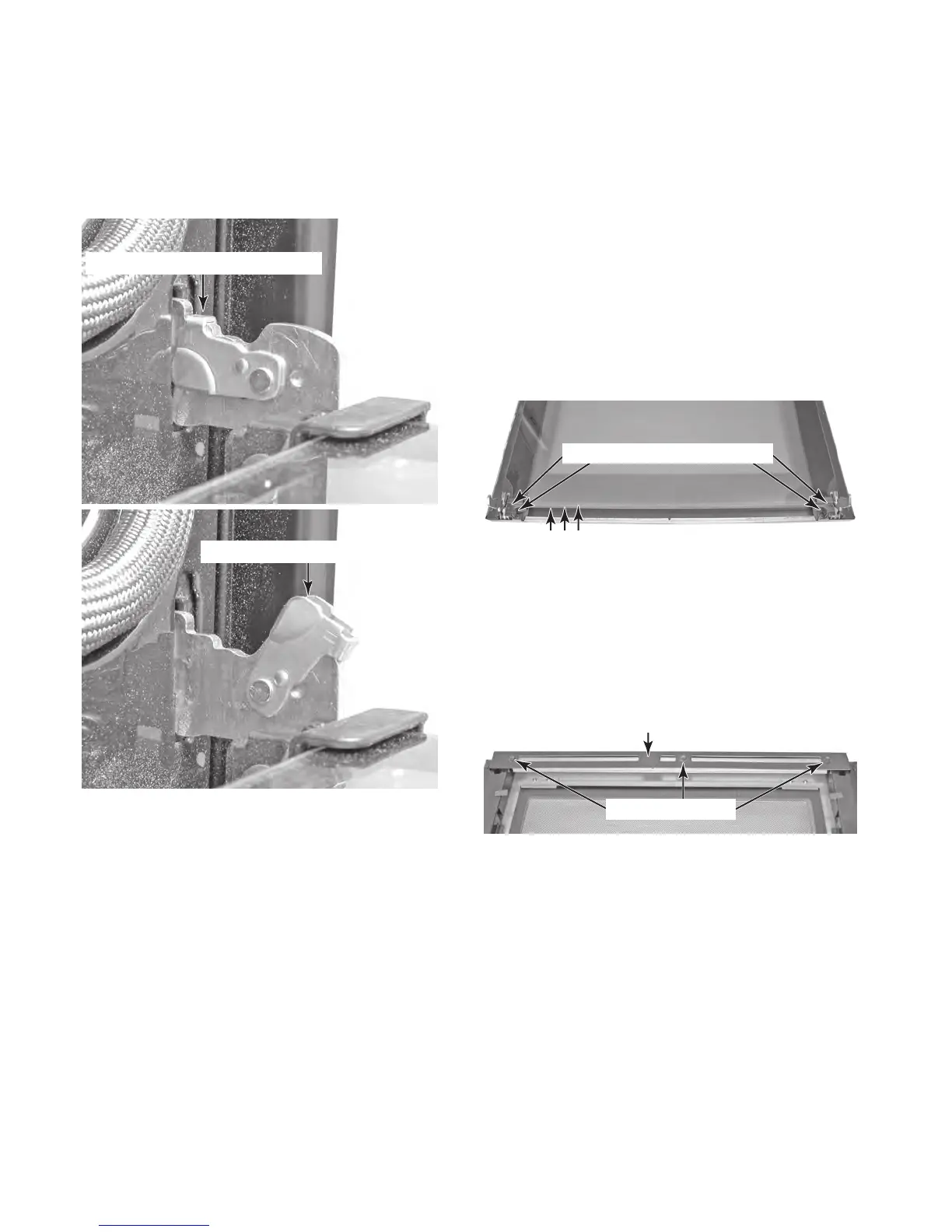 2. Raise the two door hinge tabs to the “un-