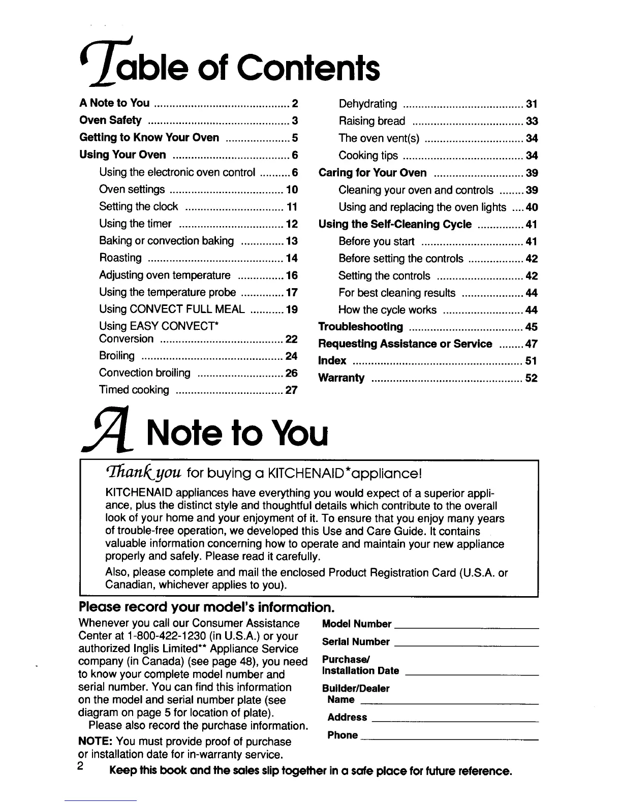 KitchenAid KEBS107D - Oven Introduction and Features; A Note to You
