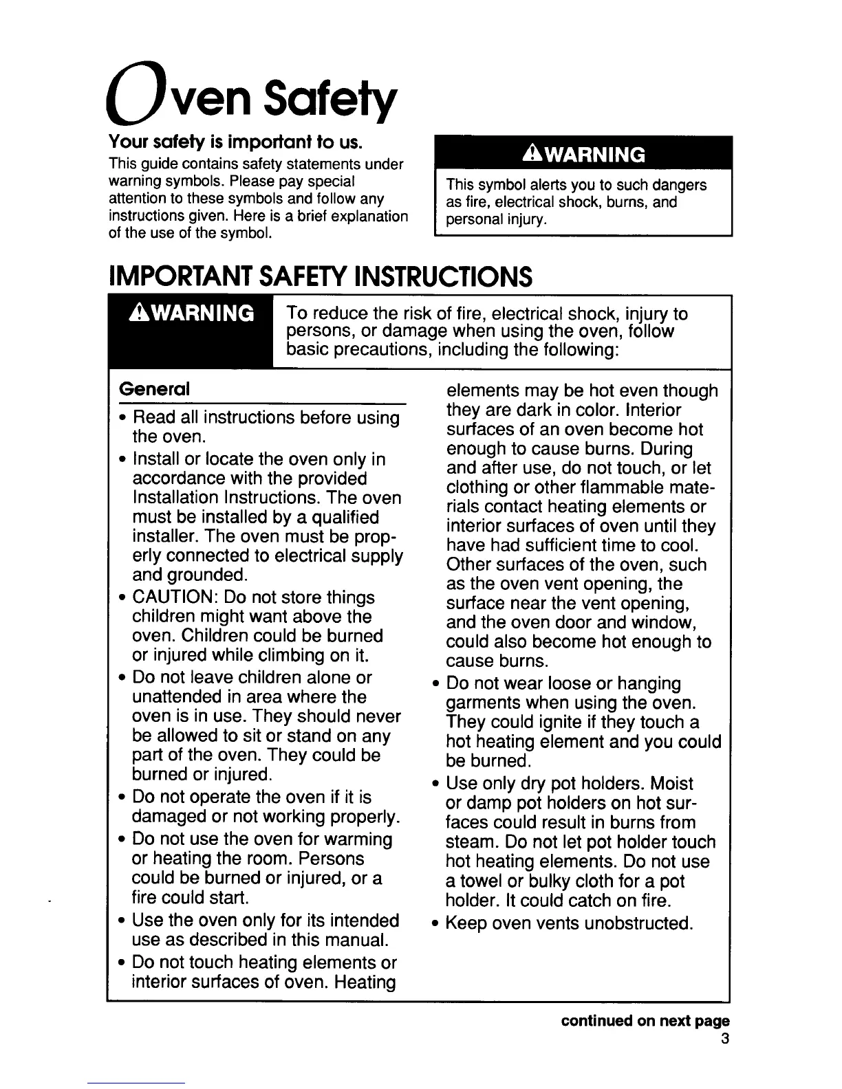 KitchenAid KEBS107D - Oven Safety Precautions; Important Safety Instructions