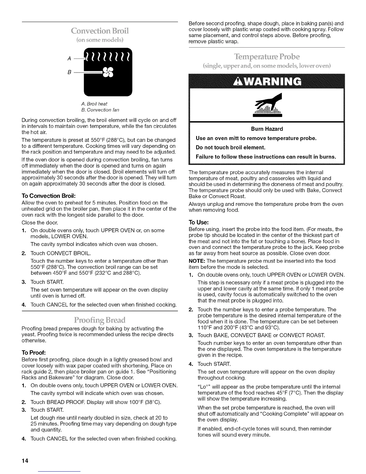 2. Touch BREAD PROOE Display will show 100°F (38°C).