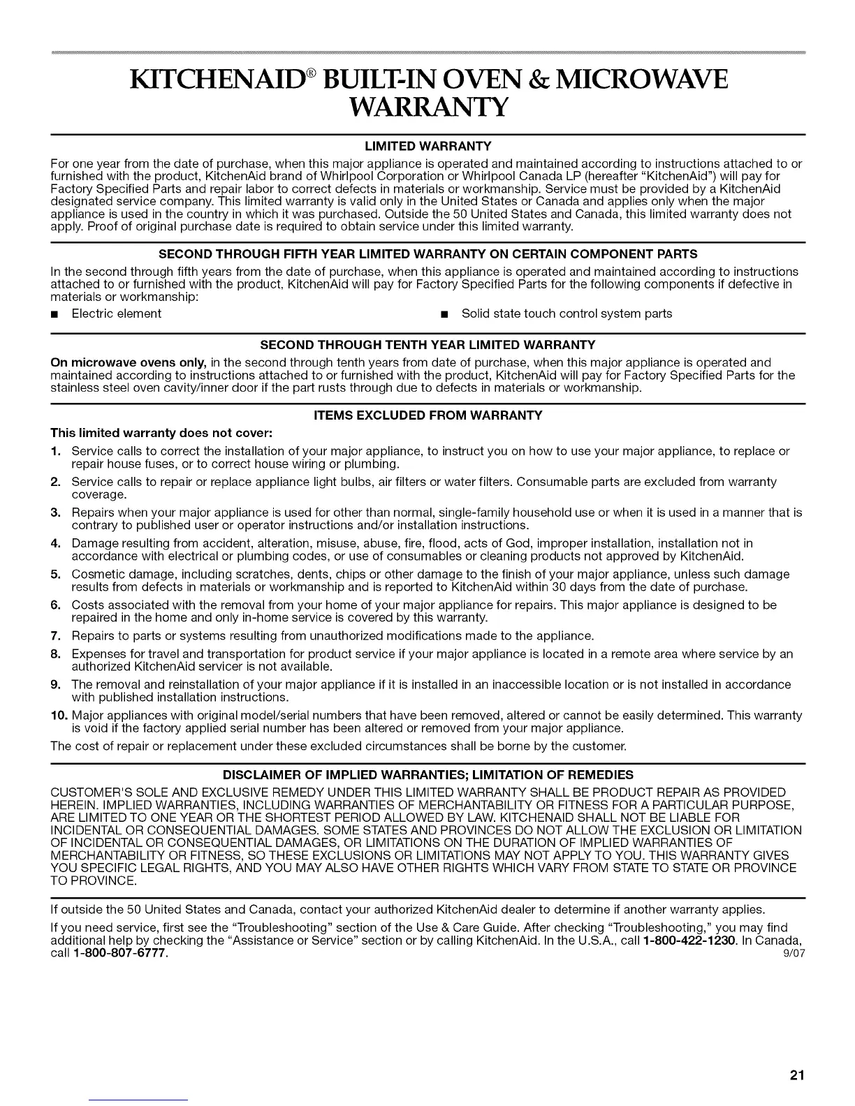 call 1-800-807-6777. 9/07