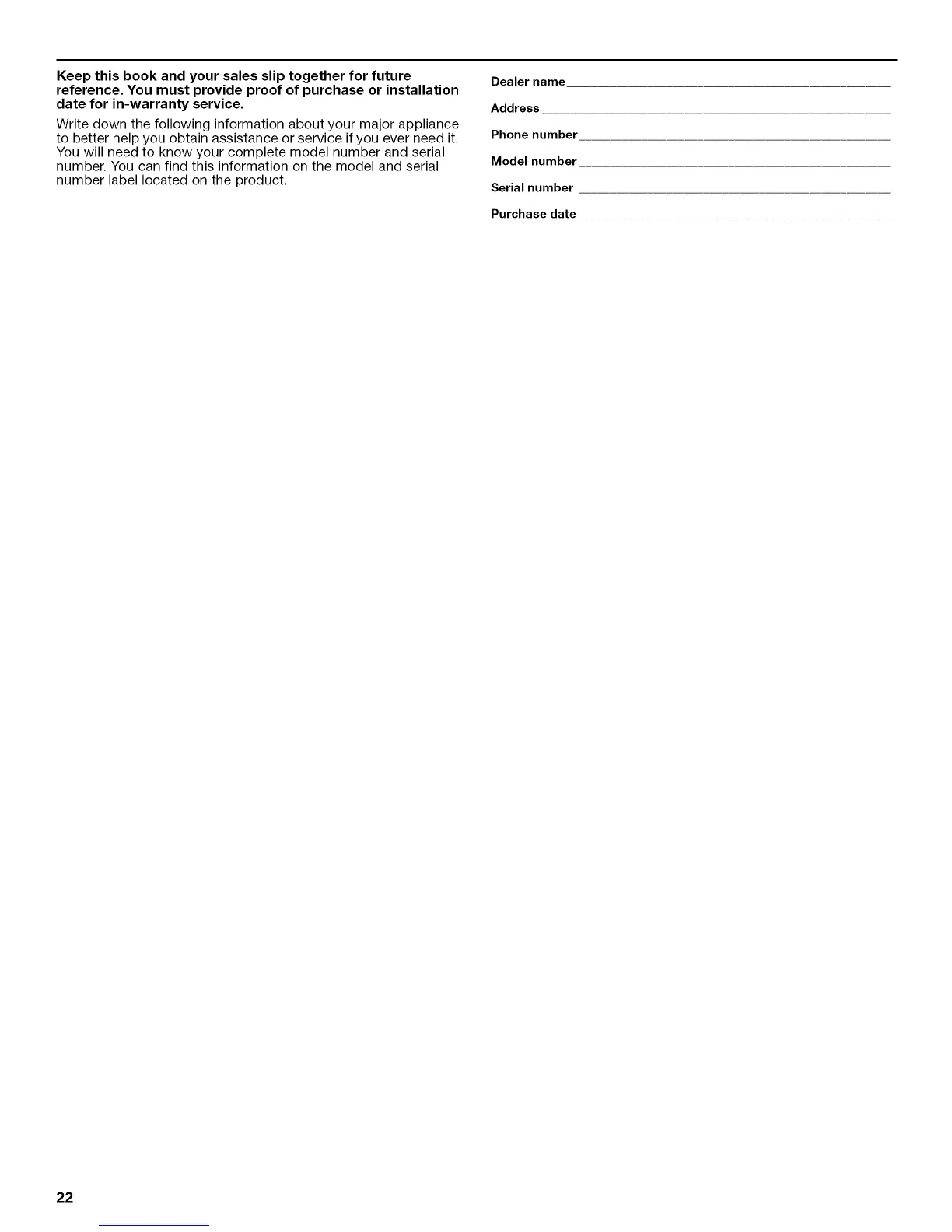 Write down the following information about your major appliance