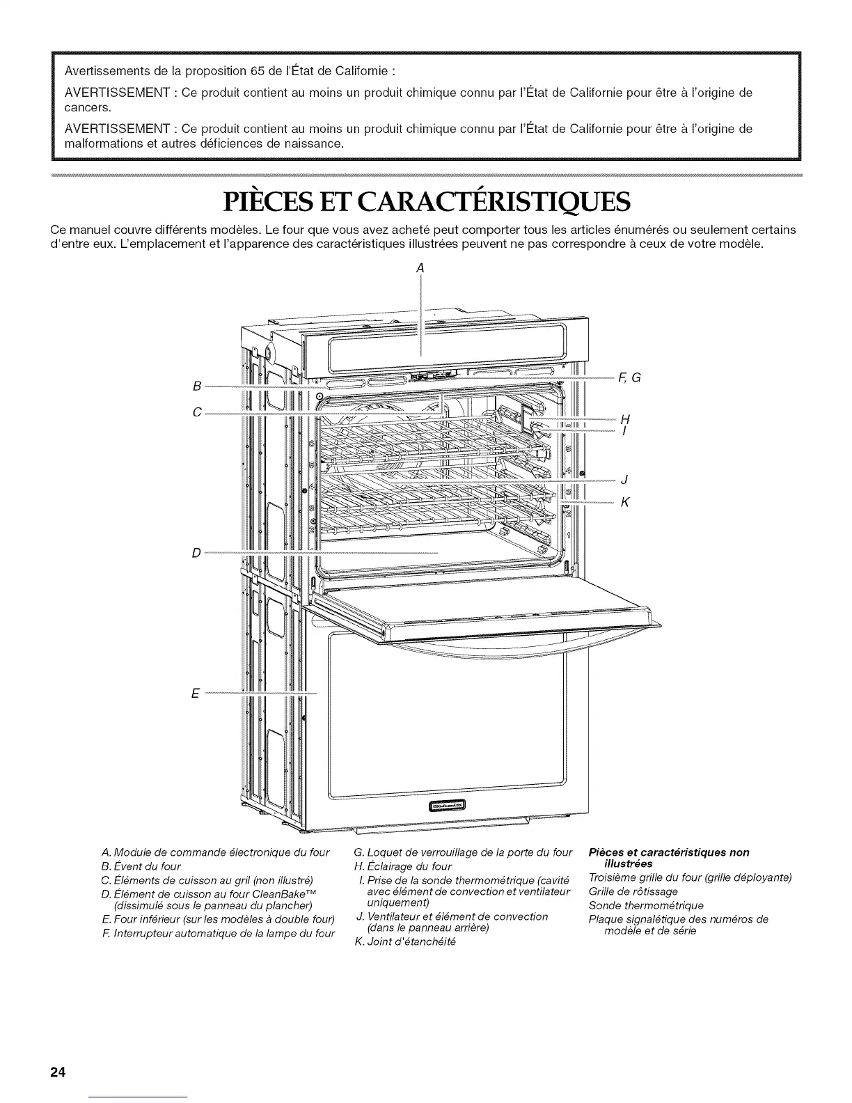 Ce manuel couvre differents modeles. Le four que vous avez achete peut comporter tousles articles enum6r6s ou seulement certains