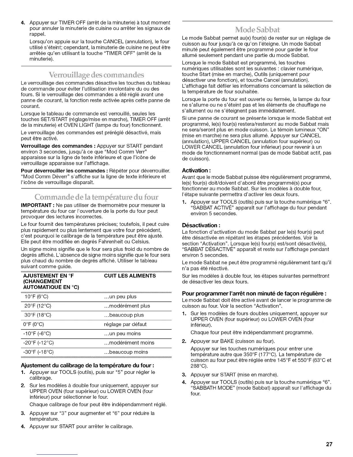 fonctionner au mode Sabbat. Sur les modeles & double four,