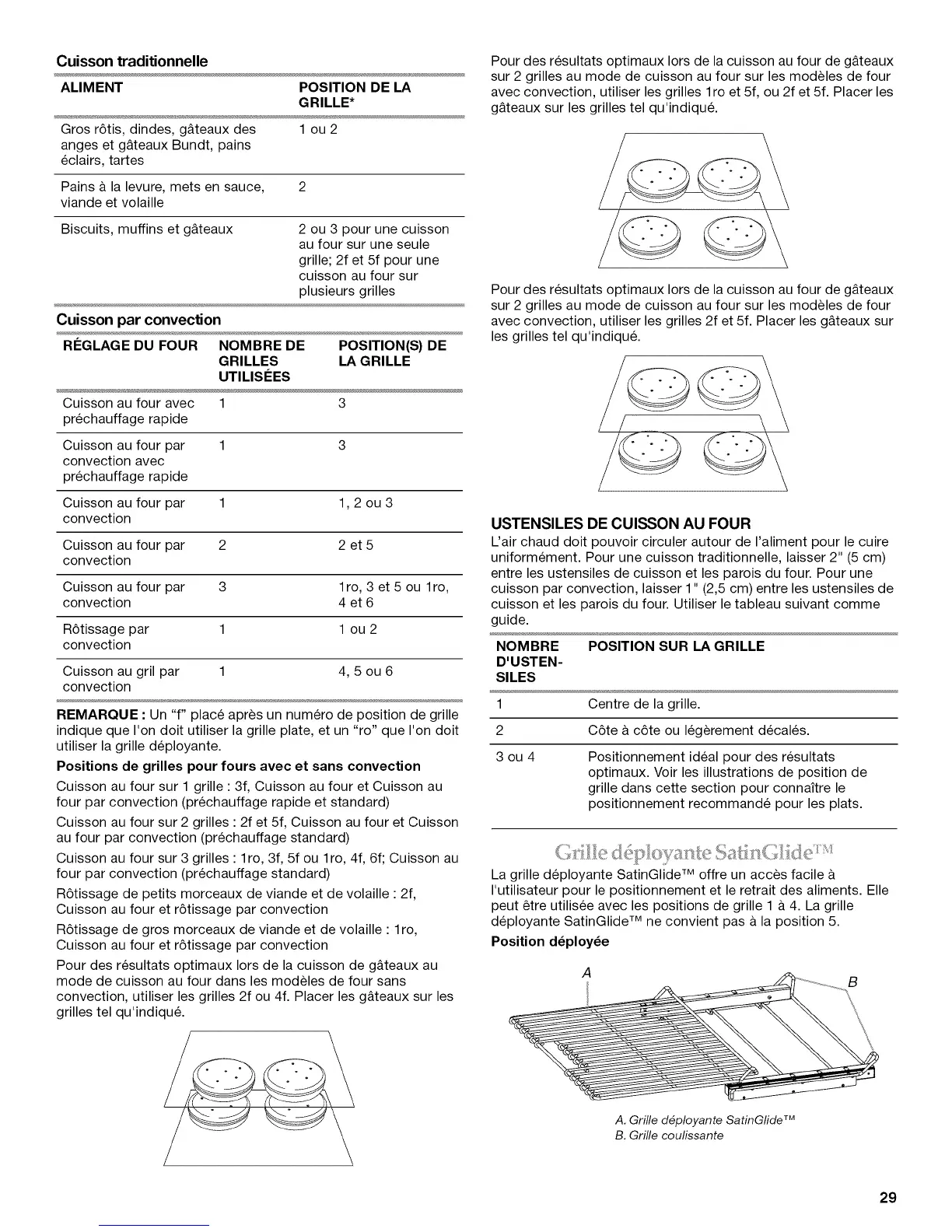 cuisson par convection, laisser 1" (2,5 cm) entre les ustensiles de