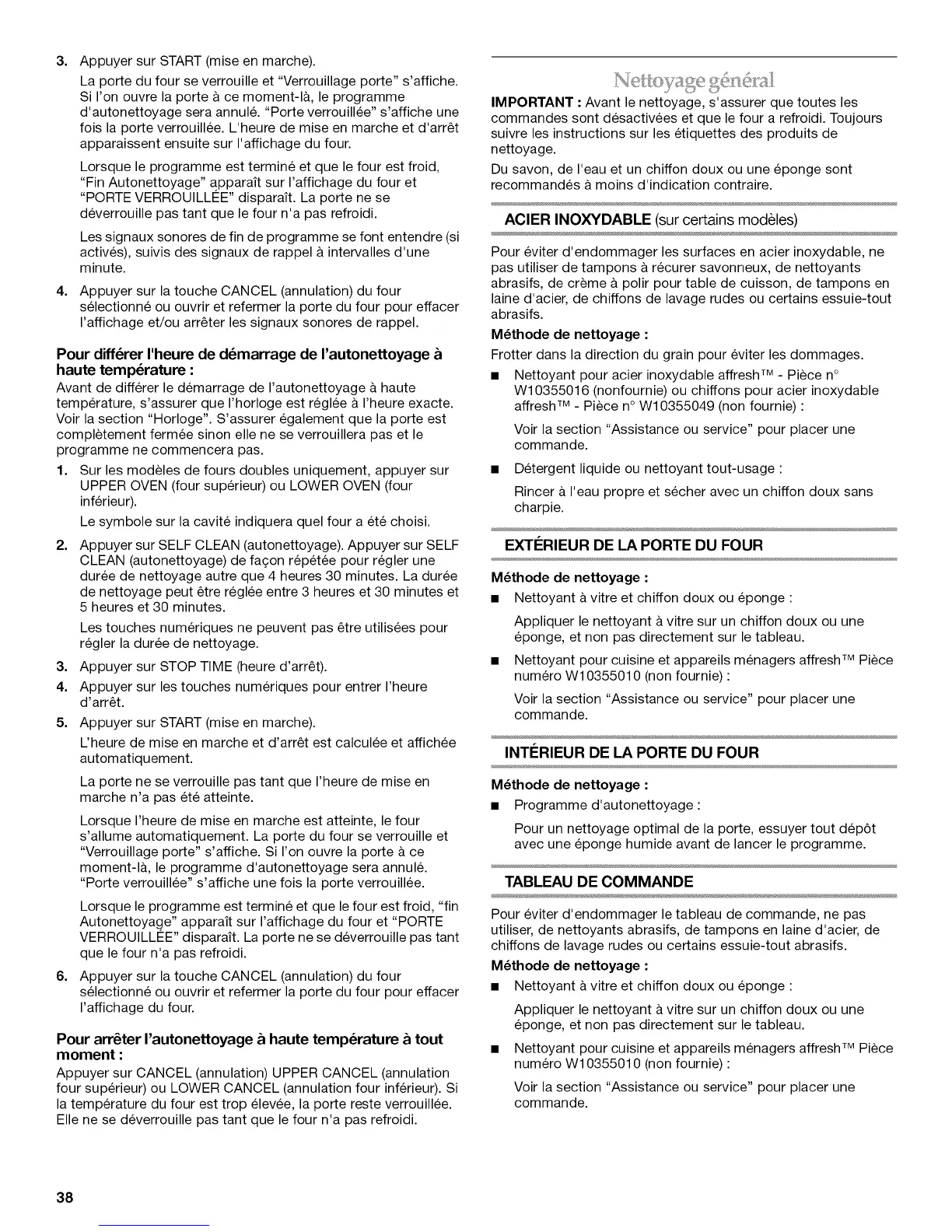 Pour arr_ter I'autonettoyage & haute temperature & tout
