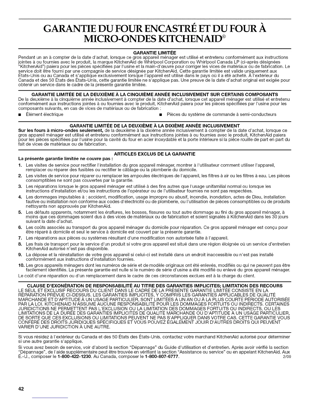 PAR LA LOI. KITCHENAID N'ASSUME AUCUNE RESPONSABILITI 2 POUR LES DOMMAGES FORTUITS OU INDIRECTS. CERTAINES