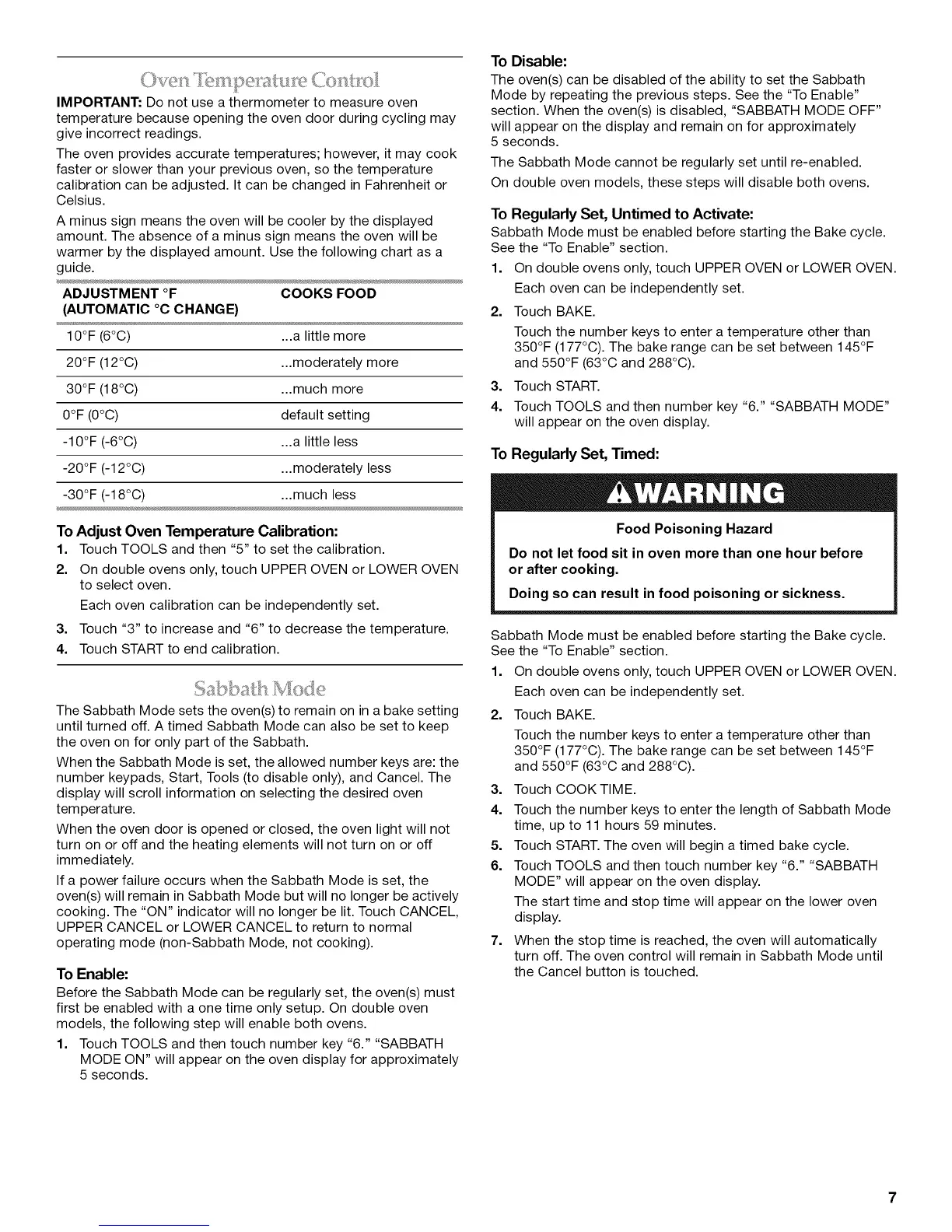 section. When the oven(s) is disabled, "SABBATH MODE OFF"