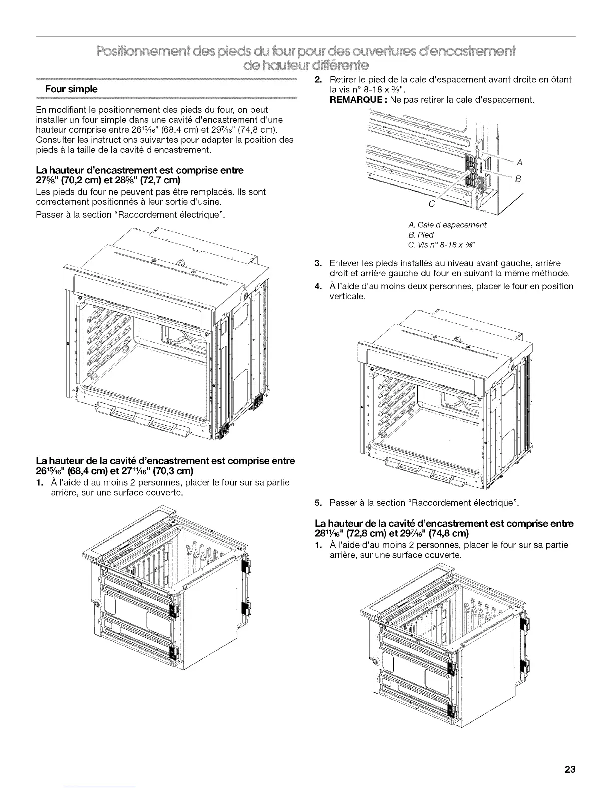 Les pieds du four ne peuvent pas _tre remplaces. IIs sont
