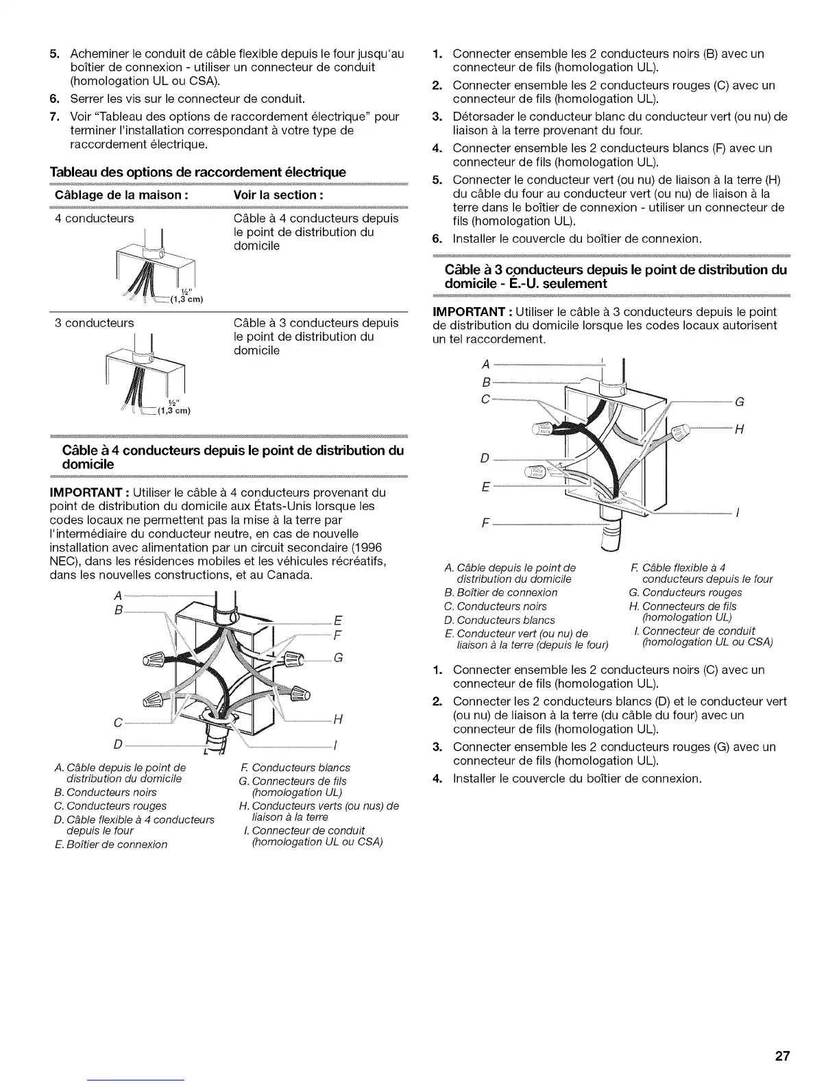 7. Voir "Tableau des options de raccordement electrique" pour