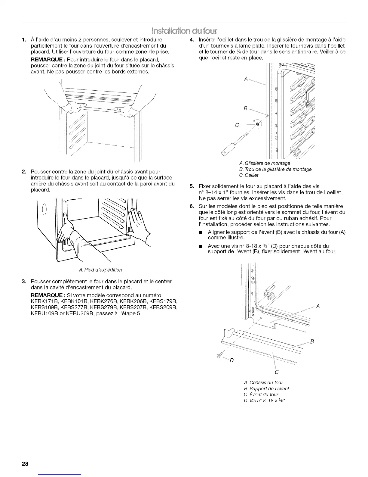 • Aligner le support de I'event (B) avec le chassis du four (A)